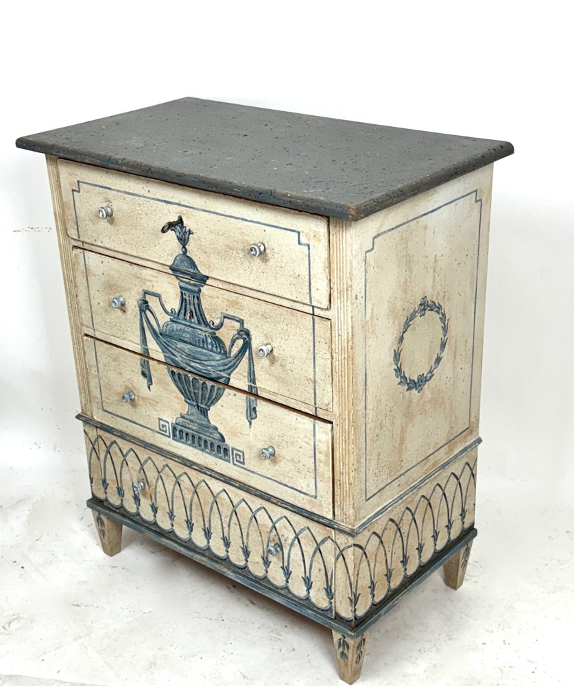 Kleine gefasste Kommode mit klassizistischer Malerei, Nadelholz, Ende 19. Jhd.