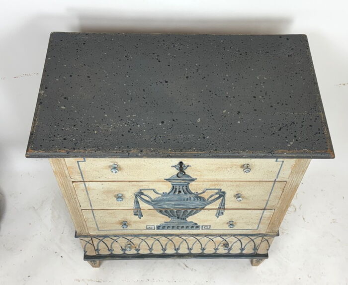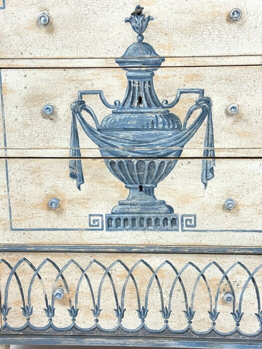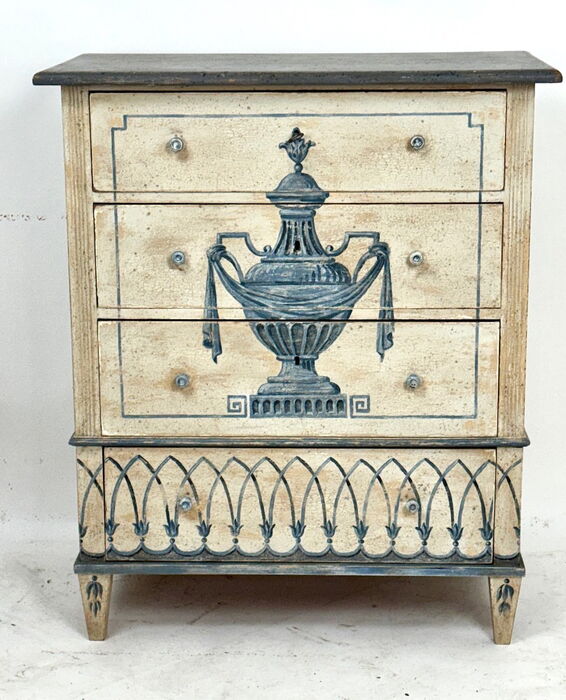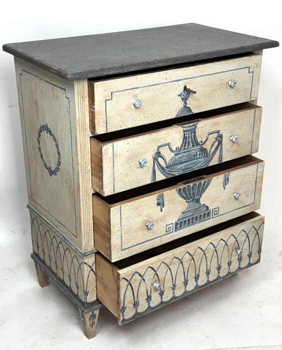 Kleine gefasste Kommode mit klassizistischer Malerei, Nadelholz, Ende 19. Jhd.