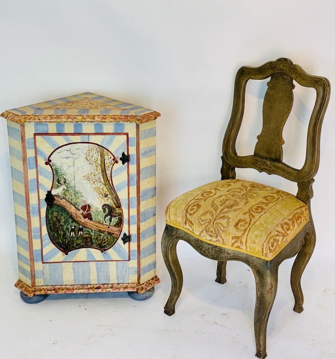 Kleiner barocker Eckschrank, farbige Bauernmalerei, Süddeutsch, Ende18. Jhd.