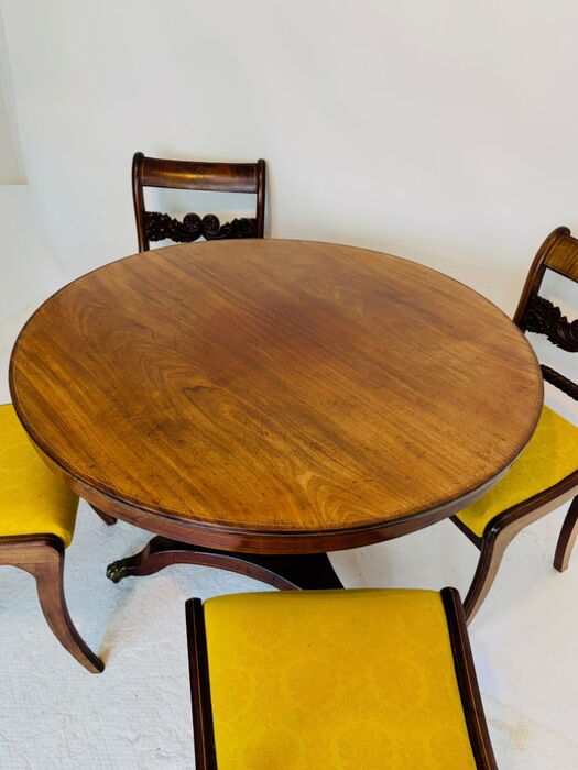Biedermeier Sitzgruppe, Tisch m. 4 Stühlen, Mahagoni, Norddeutsch um 1820