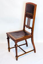 Sitzfläche und Rückenlehne mit braunen Leder bezogen und
