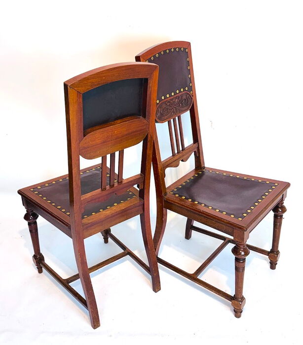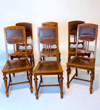 Satz von sechs Jugendstil-Stühlen, Nussbaum, deutsch um 1910