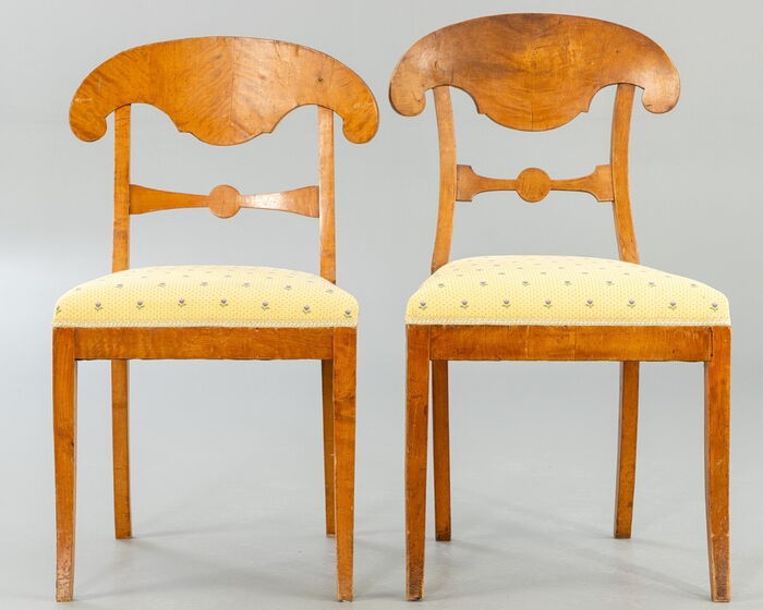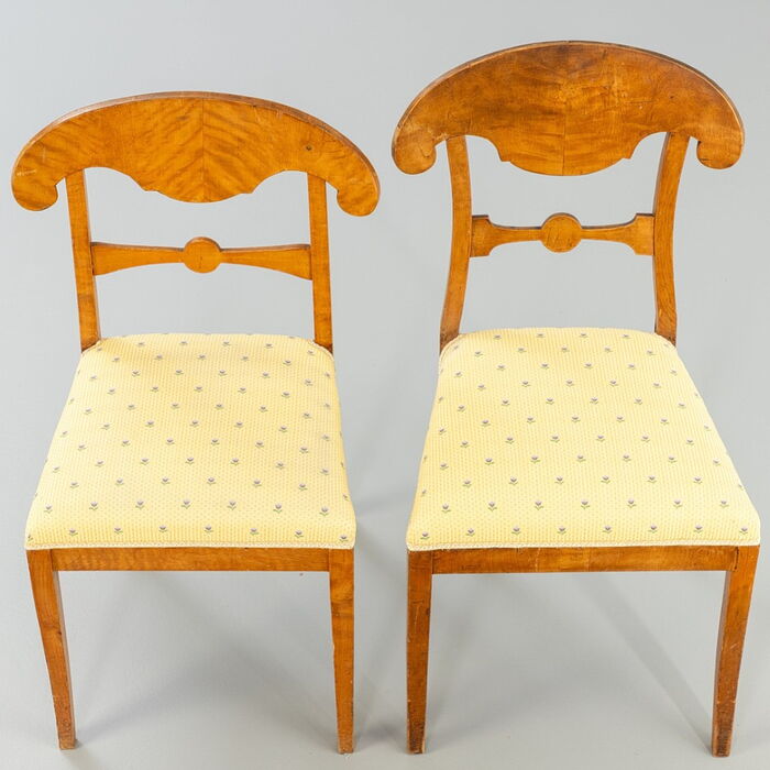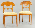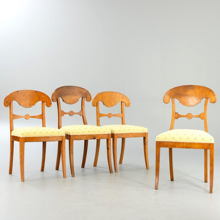 Satz von Vier Biedermeier Stühlen, Schaufelstülen, Birke um 1820
