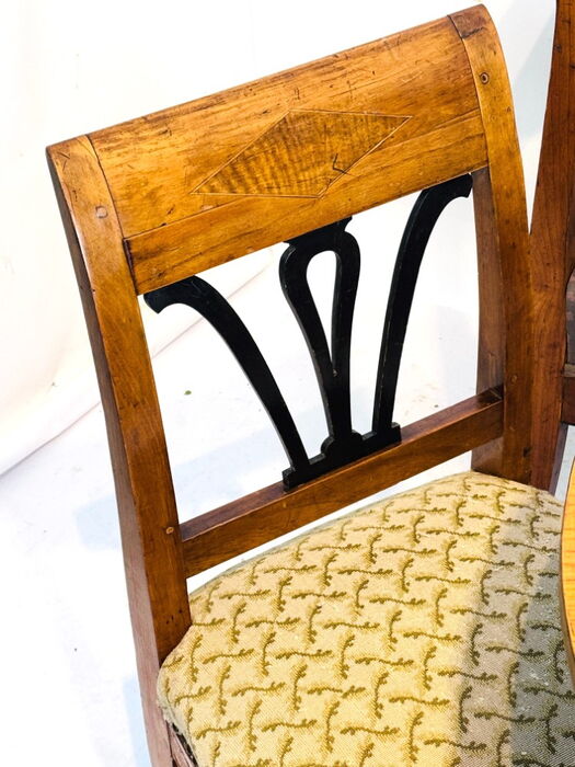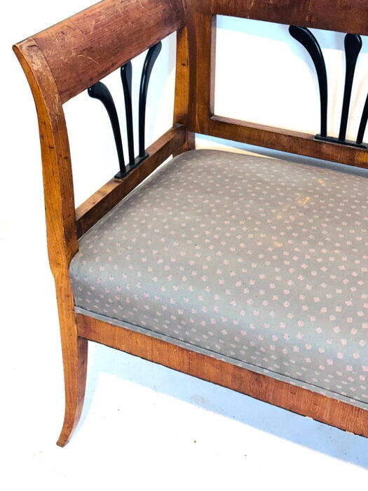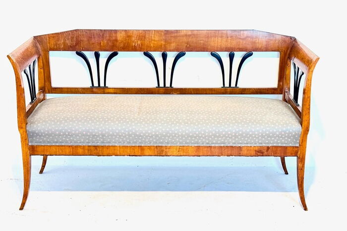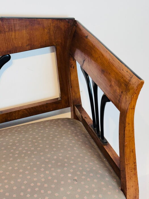 Fünfteilige Biedermeier Sitzgruppe, aus Kirschbaum, mit teilweise ebonisierten Elementen.