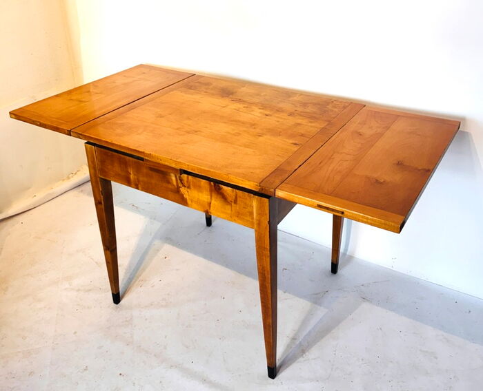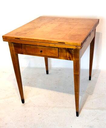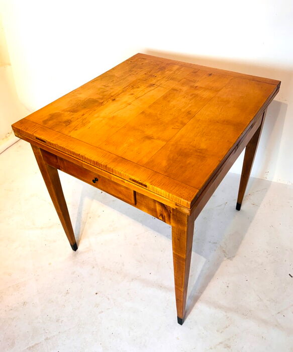 Biedermeier Ausziehtisch, Birke, Berlin / Brandenburg um 1820, mit Schublade