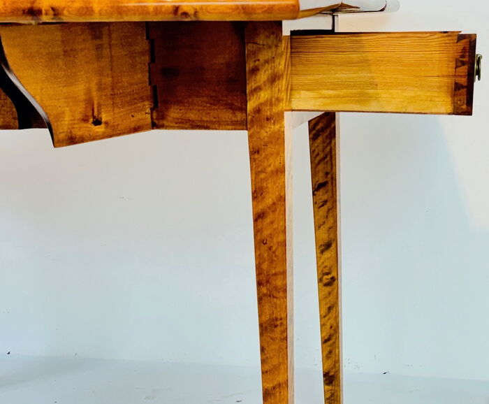 Biedermeier Wangen-Tisch, Arbeitstisch, Birke, Berlin um 1815, Top restauriert