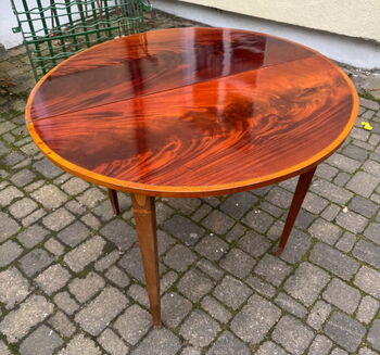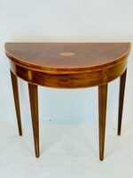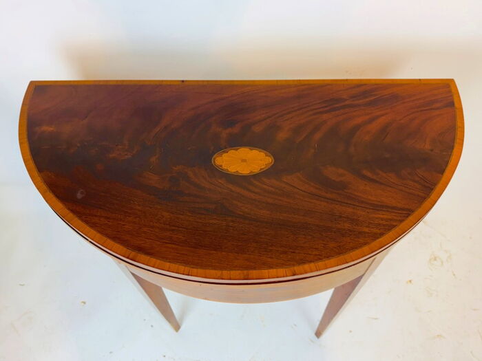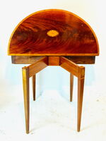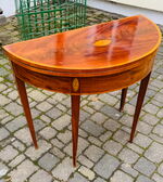 Demi-Lune-Tisch, Halbrunder Klapptisch, Mahagoni, mit Intarsien, 19. Jhd.