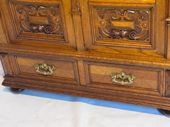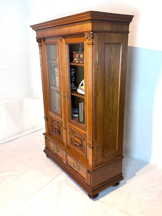 Gründerzeit Bücherschrank, Vitrine, Eiche, Berlin um 1880
